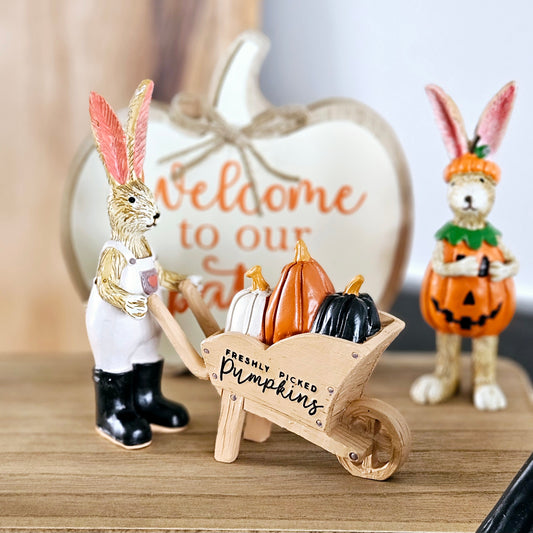 Wheelbarrow Wizard Freshly Picked Pumpkins Rabbit