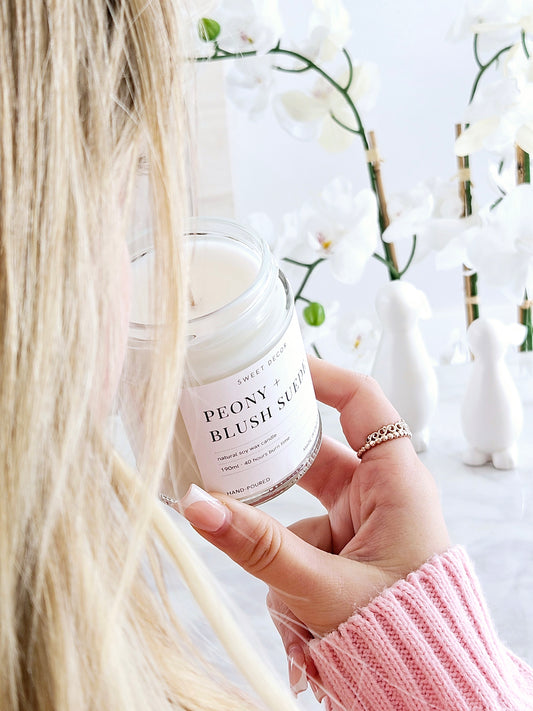 Sweet Decor Natural Soy Peony + Blush Suede Scented Candle