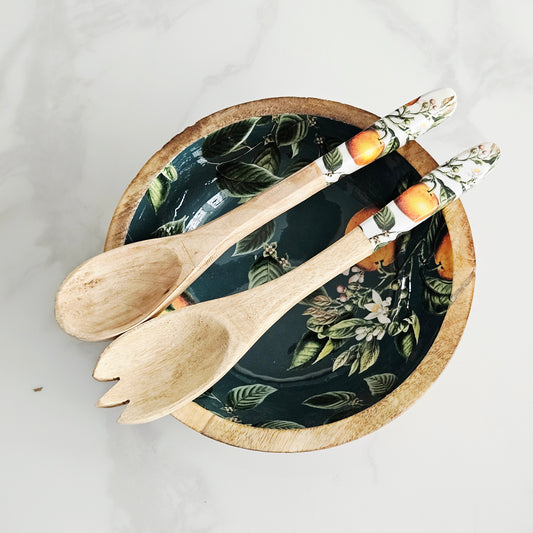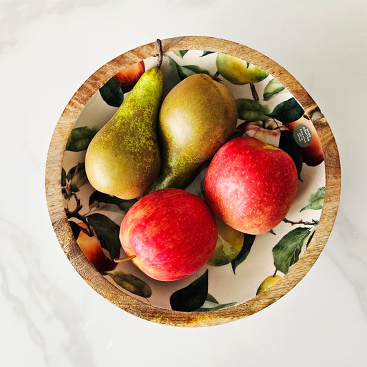Handcrafted Mango Wood Bowl - Apple & Pears