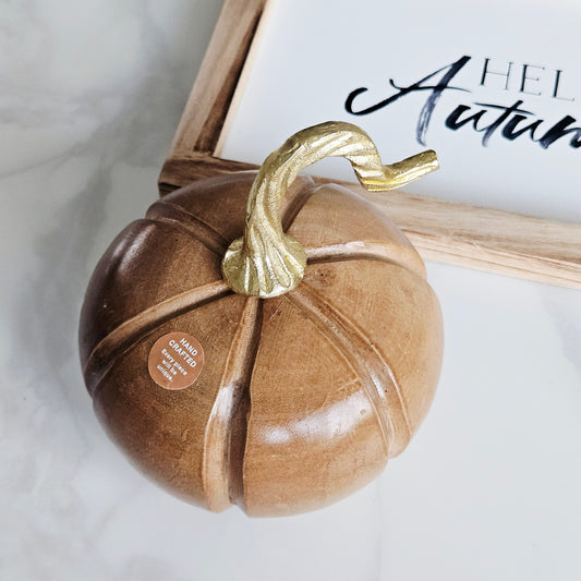 Pumpkin Ornament - Mango Wood with Metal Stem