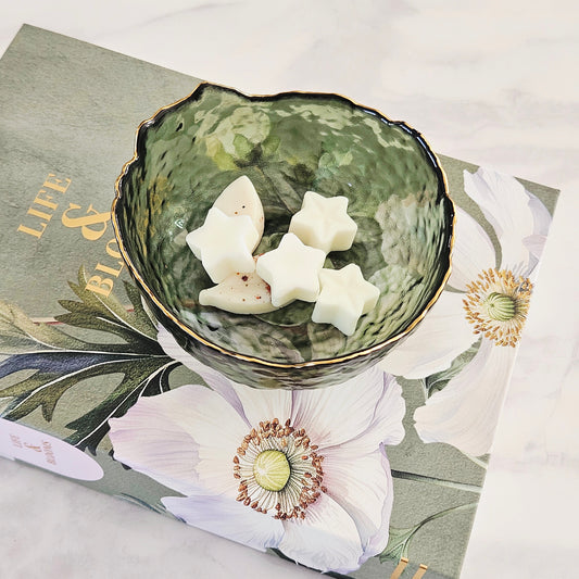 Green Glass Wavy Bowl With Gold Rim 13cm Small