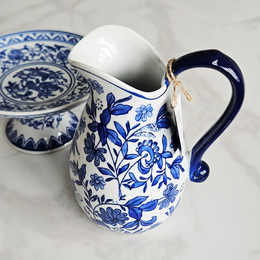 Sumatra Blue & White Large Ceramic Jug 9"