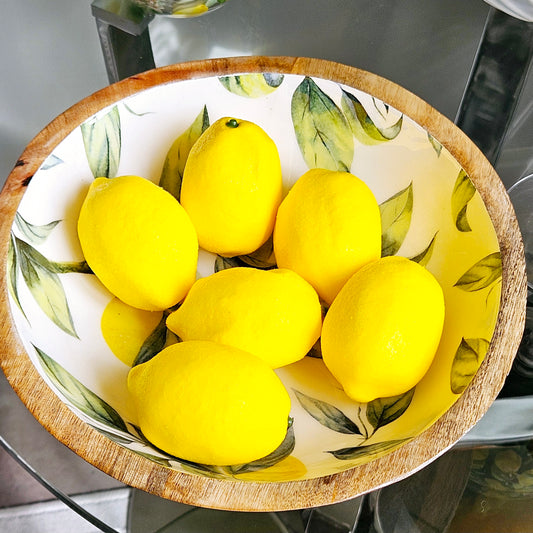 Handcrafted Lemons and Leaves Mango Wooden Bowl