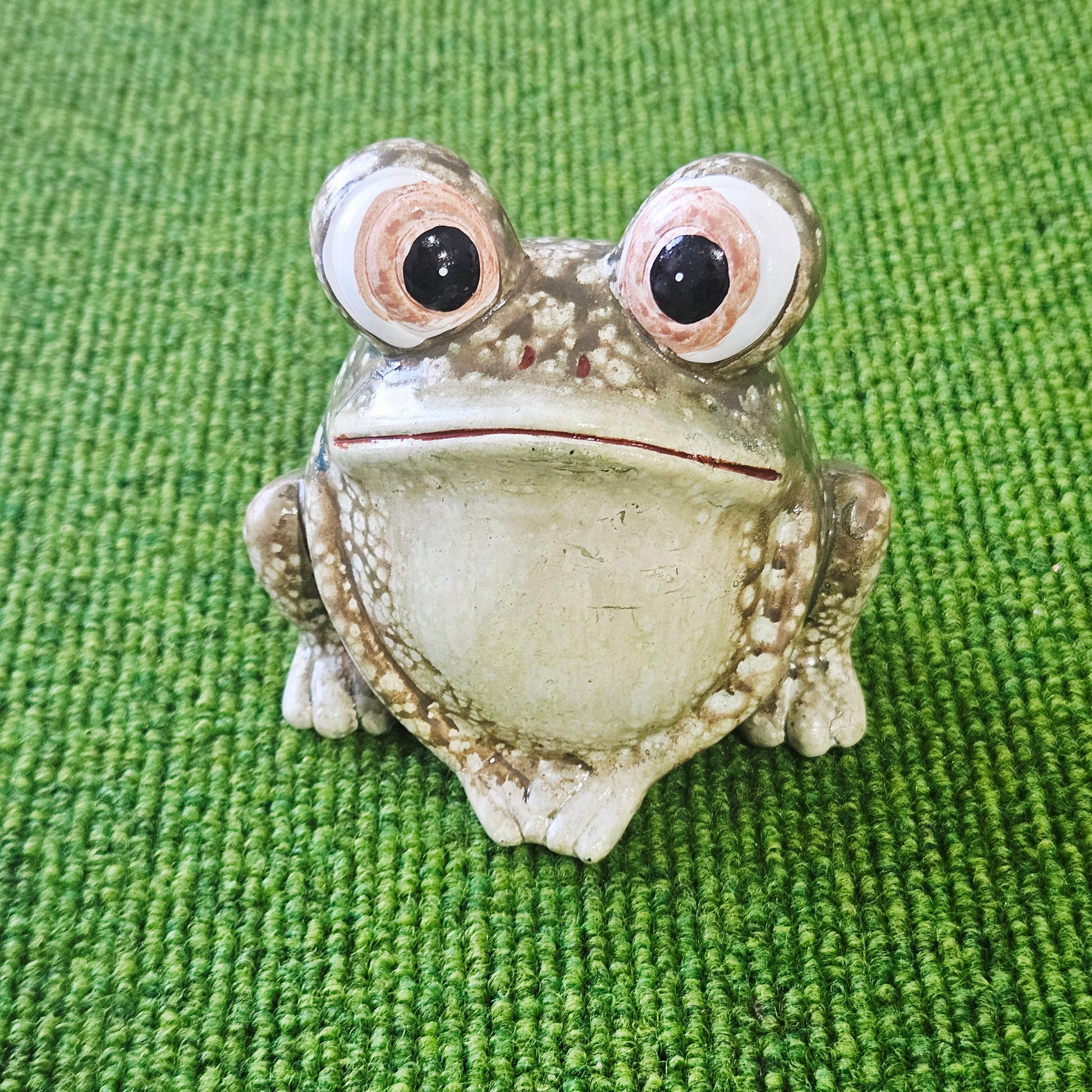 charming and unique terracotta frog ornaments. Each has a speckled, rich green glaze and characterful details.